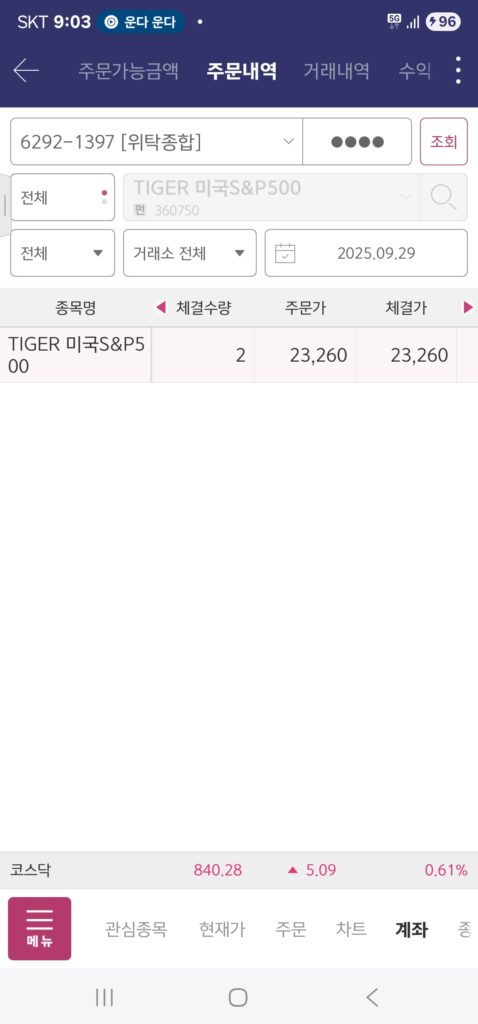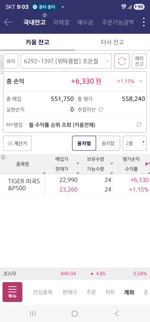 S&P500 지수 상승 시 : Tiger 미국 S&P500 2주 매수