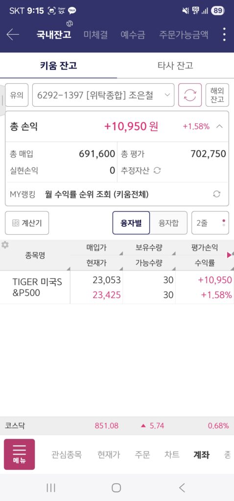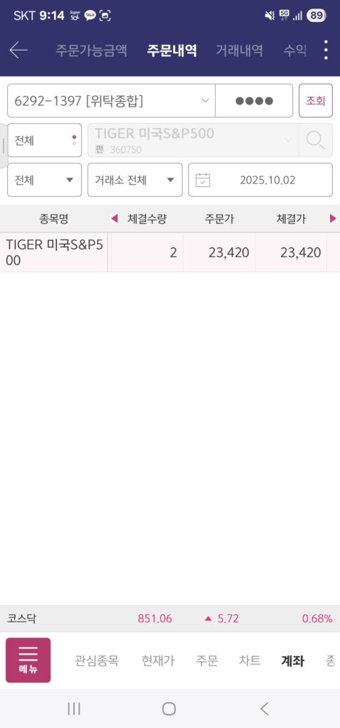 S&P500 지수 상승 시 : Tiger 미국 S&P500 2주 매수
